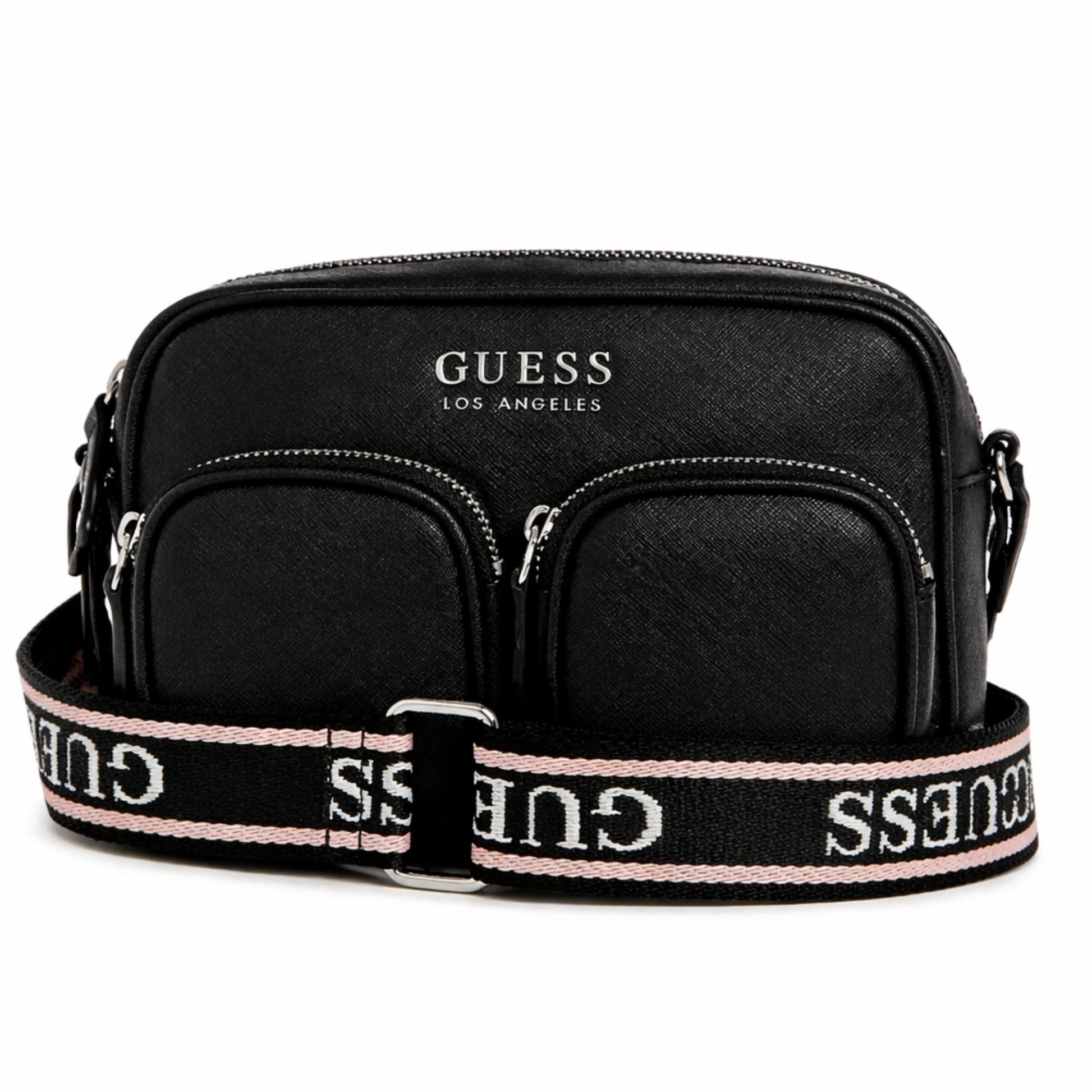 Un accesorio práctico y funcional que refleja el estilo característico de la marca Guess.